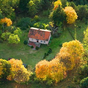 Lotnicze, warm-maz. Wschodni brzeg jezora Dabrowa Wlk. z widoczna posiadloscia Prezydenta Aleksandra Kwasniewskiego.