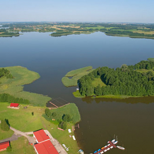 Lotnicze, EU, PL, Warm-Maz. Jezioro Kisajno. Wyspy Sosnowy Ostrow i Duzy Ostrow.