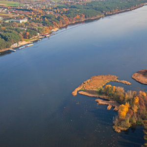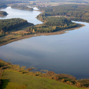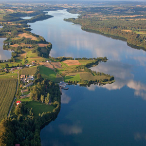 Jezioro Dobskie. Panorama na wies Pilwa i Jezykowo.