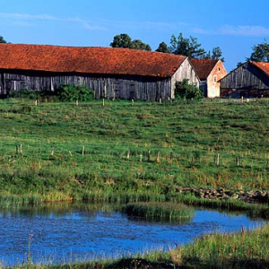 Wies Gardyny na tle jeziora Gardejki. EU, Pl, warm-maz. Lotnicze.