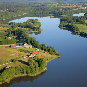 Kajaki na jeziorze Szkotowskim. EU, Pl, warm-maz. Lotnicze.