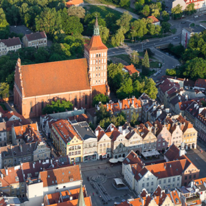 Olsztyn, Starowka n/z ulica Staromiejska z widoczna Wysoka Brama. EU, PL, Warm-Maz.