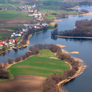 Jezioro Jeziorak pokryte warstwa lodu. EU, PL, Warm-Maz. Lotnicze.