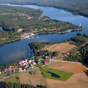 Jerzwald, wies polozona nd jeziorem Plaskim. EU, PL, Warm-Maz. Lotnicze.