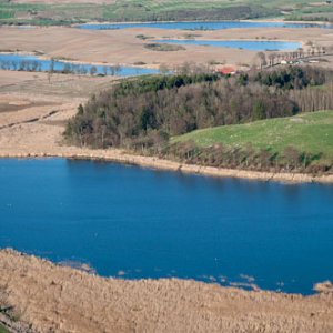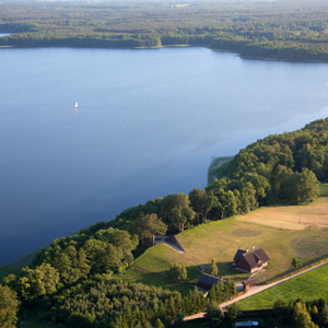 Jezioro Jeziorak, pokryte lodem. EU, PL, Warm-Maz. Lotnicze.