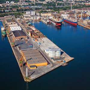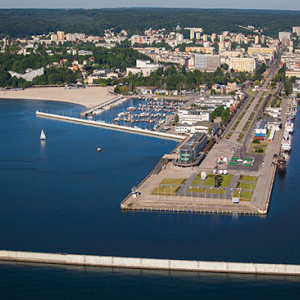 Gdynia, Molo Poludniowe z Aleja Jana Pawla II. EU, PL, Pomorskie. Lotnicze.