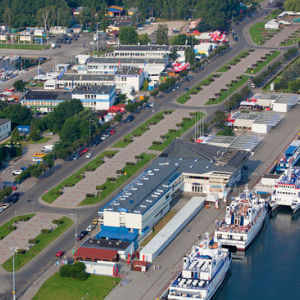 Gdynia - Srodmiescie, panorama w strone Dworca PKP. EU, PL, Pomorskie. Lotnicze.