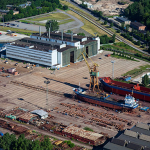 Gdynia, panorama na Plaze Miejska i Molo Poludniowe. EU, PL, Pomorskie. Lotnicze.