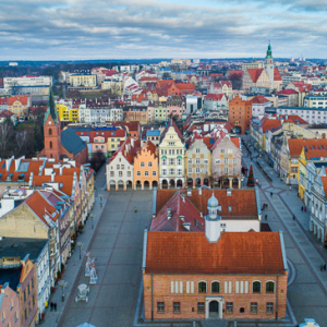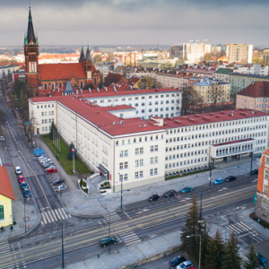 Olsztyn, panorama od str. W na Osiedle Grunwaldzkie i Srodmiescie. EU, PL, Warm-Maz. Lotnicze.