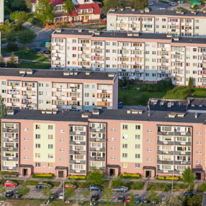 Lidzbark Warminski, Osiedle mieszkaniowe Astronomow. EU, PL, Warm-Maz. Lotnicze.