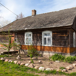 Jednorozec, drewniana zabudowa wsi. EU, Pl, Podlaskie.