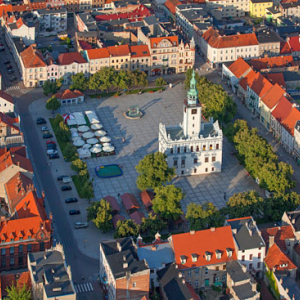 Chelno, stare miasto z kosciolem Chrzciciela i Ratuszem Miejskim. EU, Pl, Kujawsko-Pomorskie. Lotnicze.