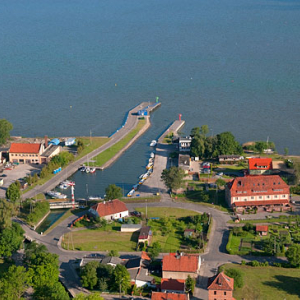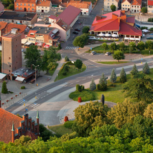 Frombork, ulica Kopernika biegnaca na wysokosci Wzgorza Katedralnego. EU, PL, Warm-Maz. Lotnicze.