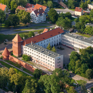 Braniewo, panorama na ulice Pilsudskiego. EU, PL, Warm-Maz. Lotnicze.