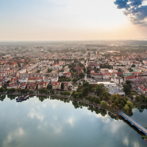 Elk, Wyspa i ulica Zamkowa. EU, Pl, Warm-Maz. Lotnicze