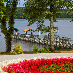 Goldap, teznie na tle jeziora. EU, Pl, Warm-Maz. Lotnicze.