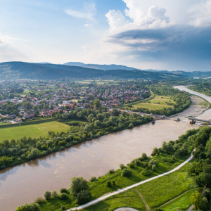 Nowy Sacz, Rynek Starego Miasta. EU, Pl, Malopolska. Lotnicze.