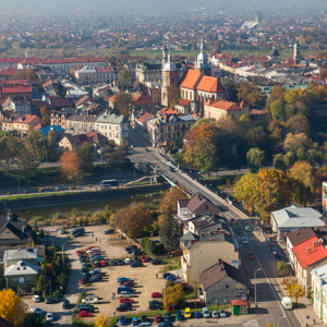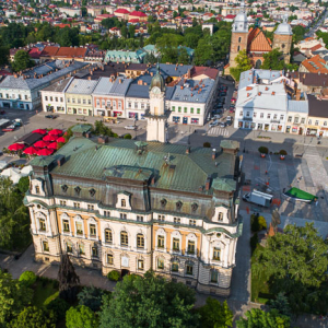 Nowy Sacz, Rynek Starego Miasta. EU, Pl, Malopolska. Lotnicze.