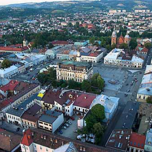 Nowy Sacz, Bazylika sw. Malgorzaty. EU, Pl, Malopolska. Lotnicze.