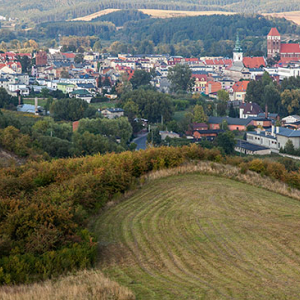 Brodnica, panorama na fare i Maly Rynek. EU, PL, Kujaw-Pom.