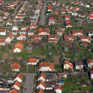 Biskupiec, osiedle domow jednorodzinnych. EU, Pl, Warm-Maz. Lotnicze.