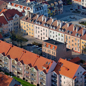 Biskupiec, centrum miasta. EU, Pl, Warm-Maz. Lotnicze.