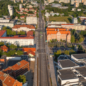 Olsztyn, al. Pilsudskiego na wysokosci Urzedu Marszalkowskiego. EU, PL, warm-maz. Lotnicze.
