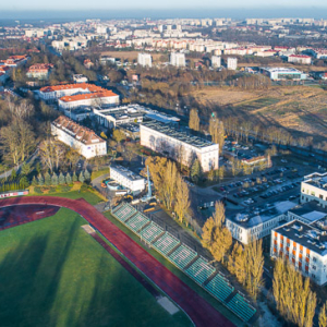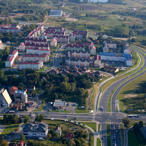 Olsztyn, lotnicza panorama miasta. Siedziba Kurii Metropolitalnej. EU, Pl, warm-maz. Lotnicze.