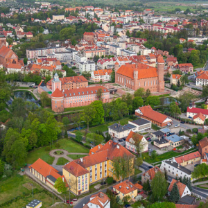 Lidzbark Warm, kosciol parafialny. EU, PL, Warm-maz. Lotnicze.