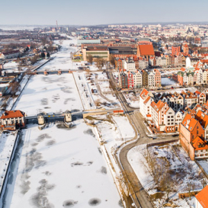 Elblag, panorama na rzeke Elblag i miasto od strony N. EU, PL, Warm-Maz. Lotnicze.
