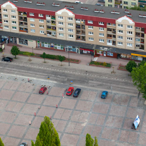 Goldap, Rynek Miejski - Plac Zwyciestwa. EU, PL, warm-maz. Lotnicze.
