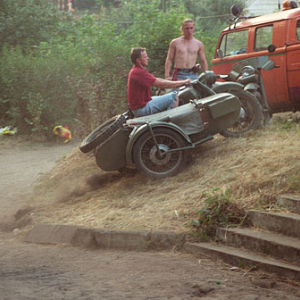 EU, Pl, warm-maz. Piknik Country MrÄ…gowo 27-07-1996 r. Ulice miasta w trakcie koncertu.